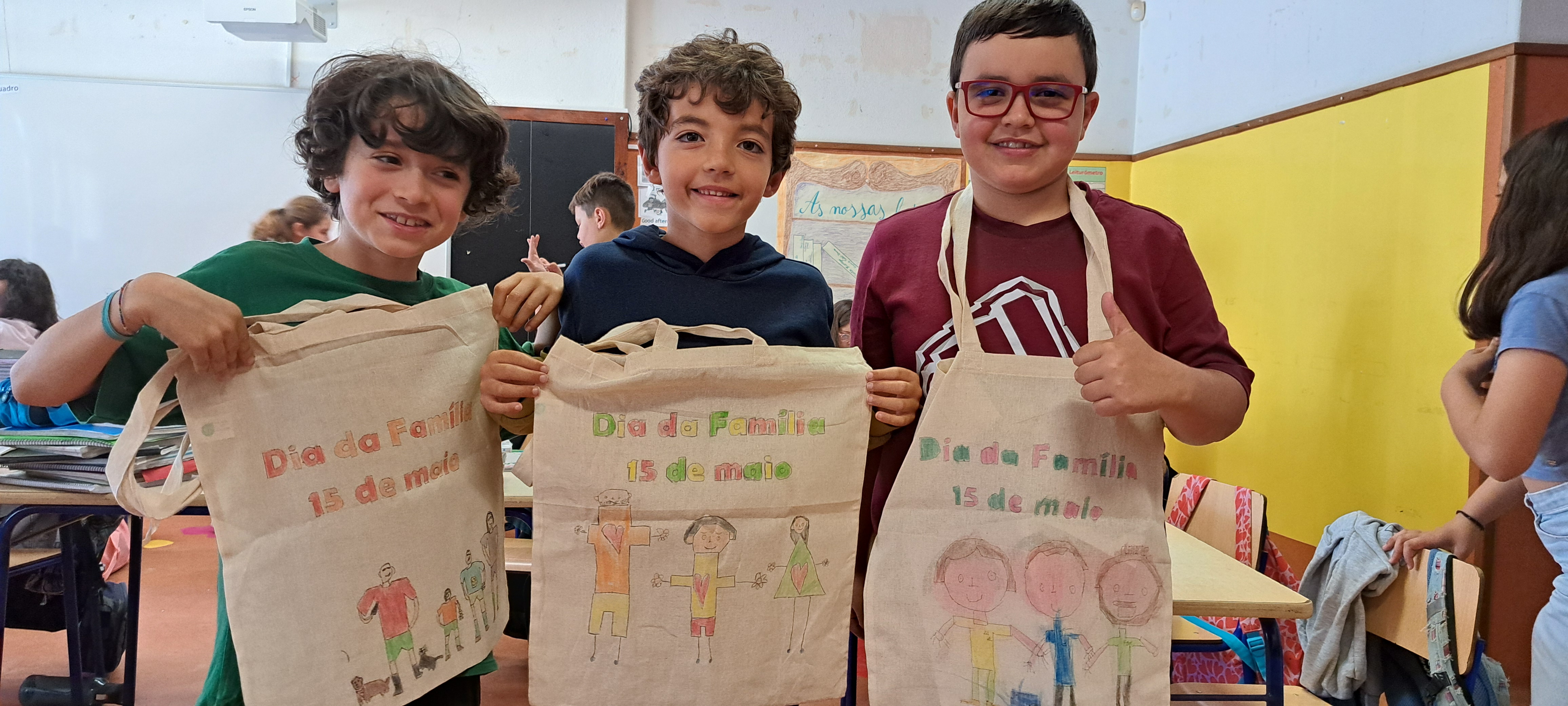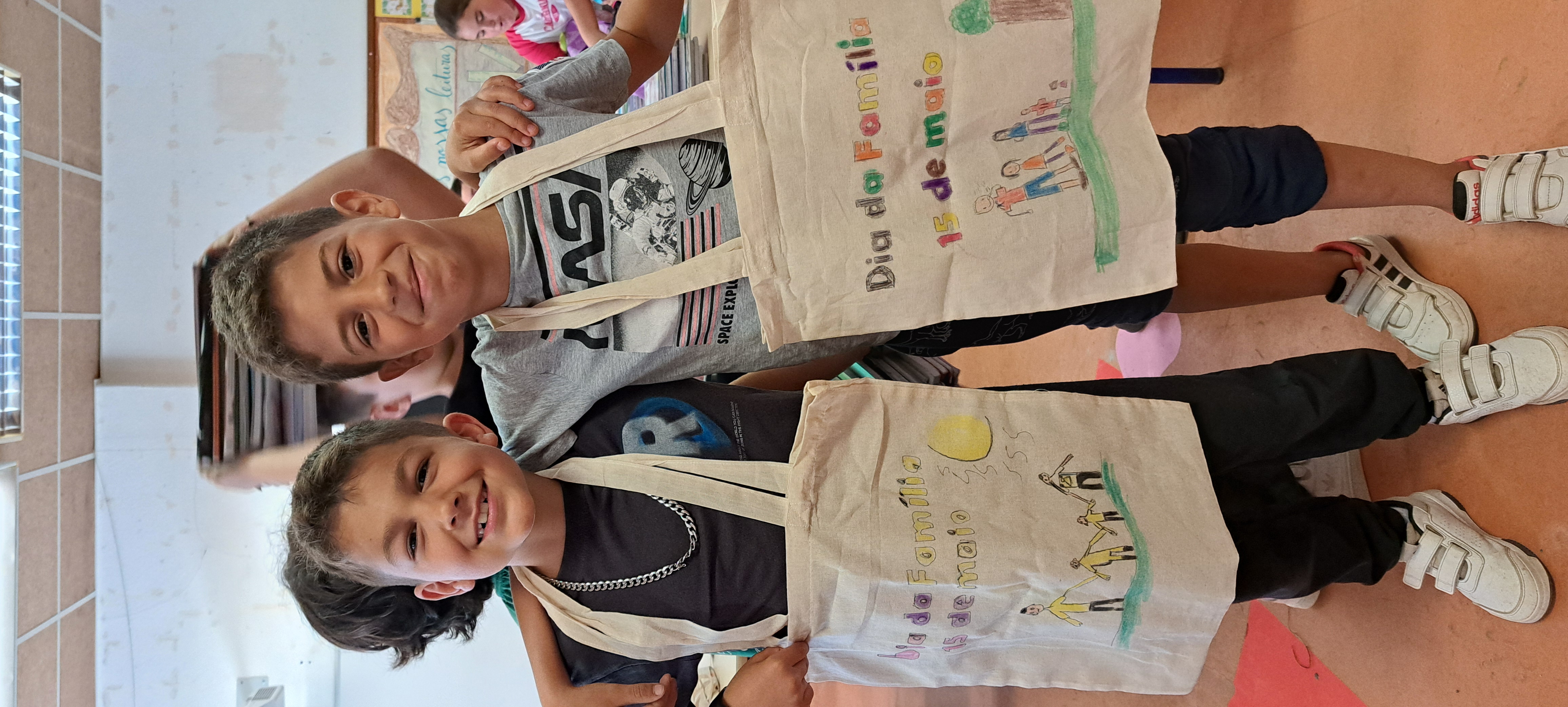 No passado dia 15 de maio, os alunos da turma 3°APM, comemoraram o Dia Internacional da Família, criando bonitas pinturas em sacos.