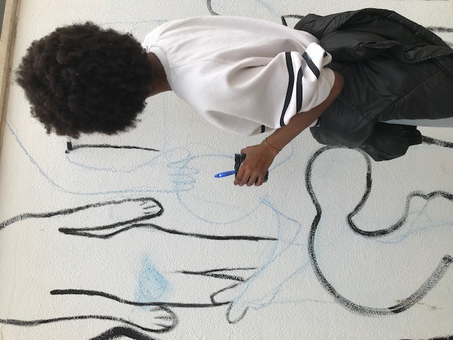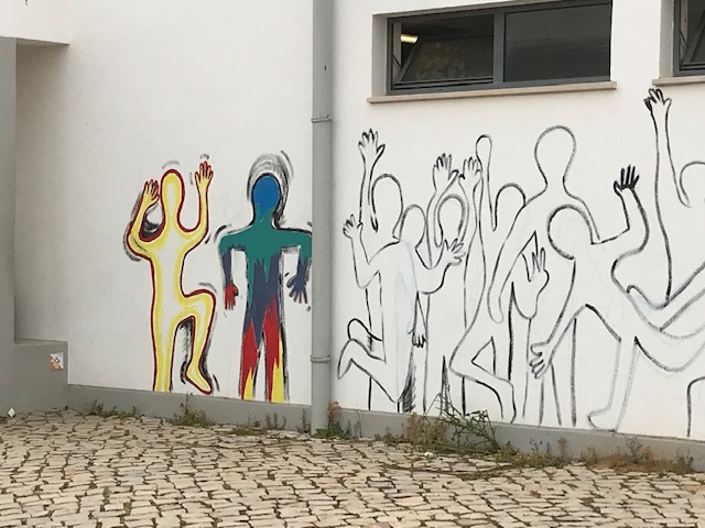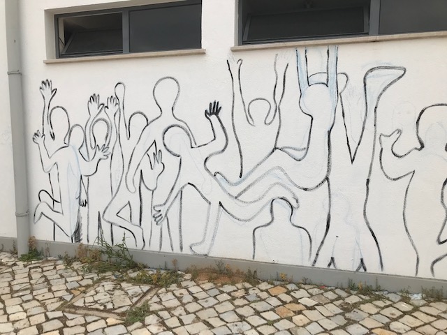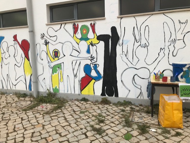 Deixaram-nas registadas a giz, no dia 21 de março, durante as atividades dos Dias da Ciência, Cultura e Desporto e posteriormente, durante as aulas de Educação Visual, foram sendo preenchidas com grafismos e cores, por alguns alunos do 7º ano e do 9º ano, sob a orientação dos professores Ana Marques e Leandro Gouveia.