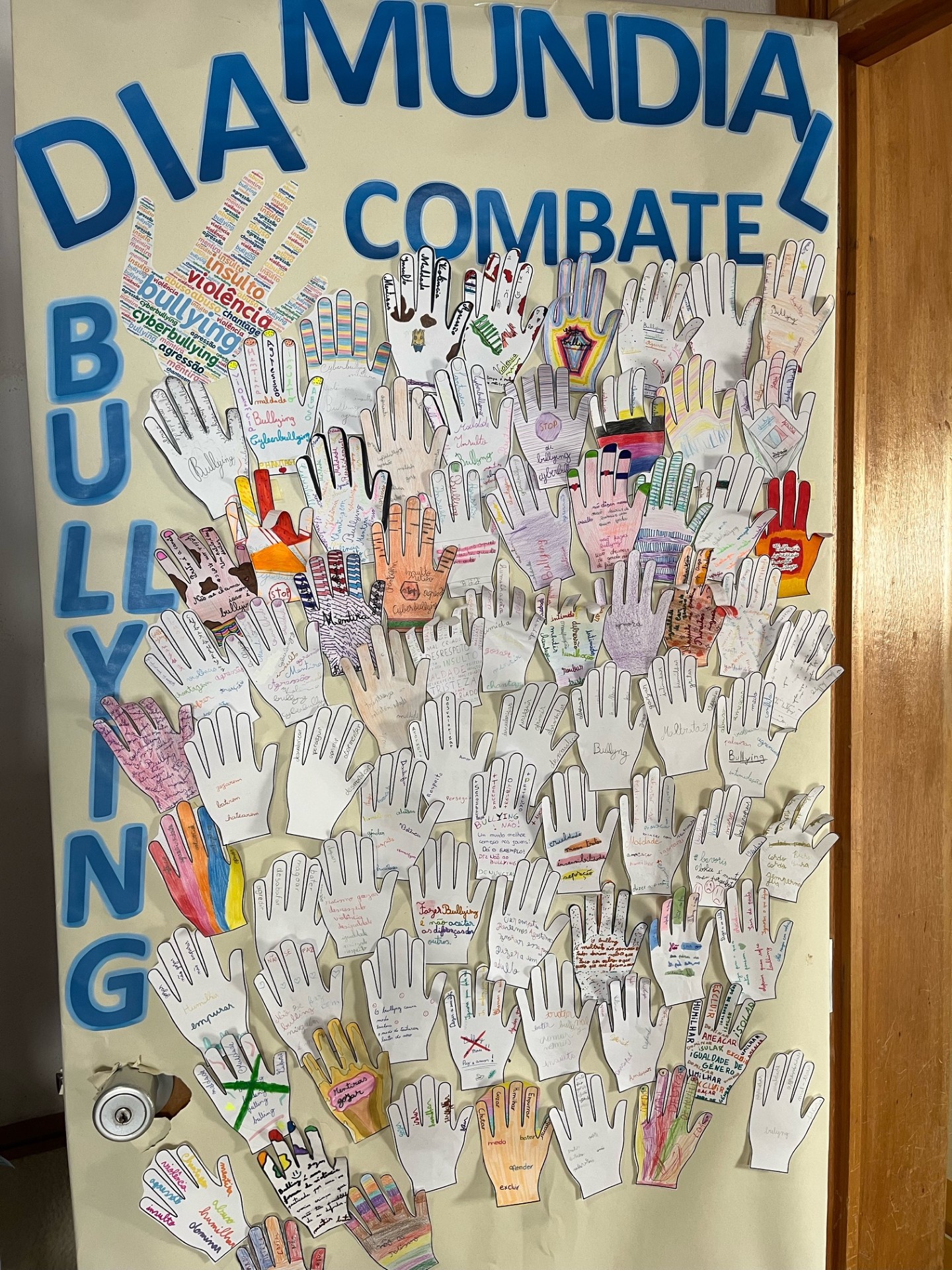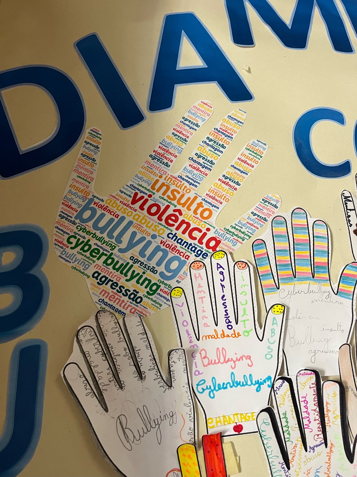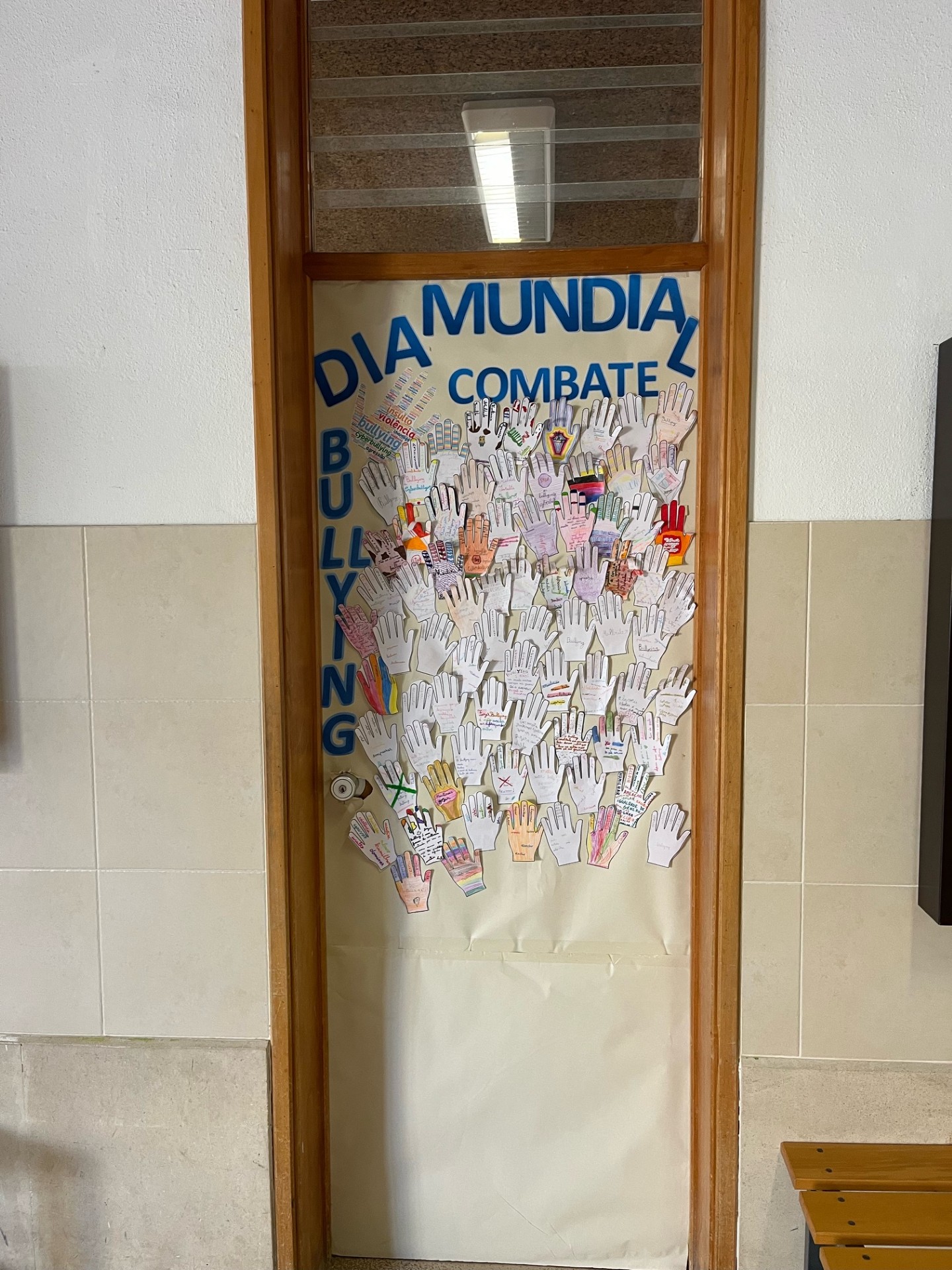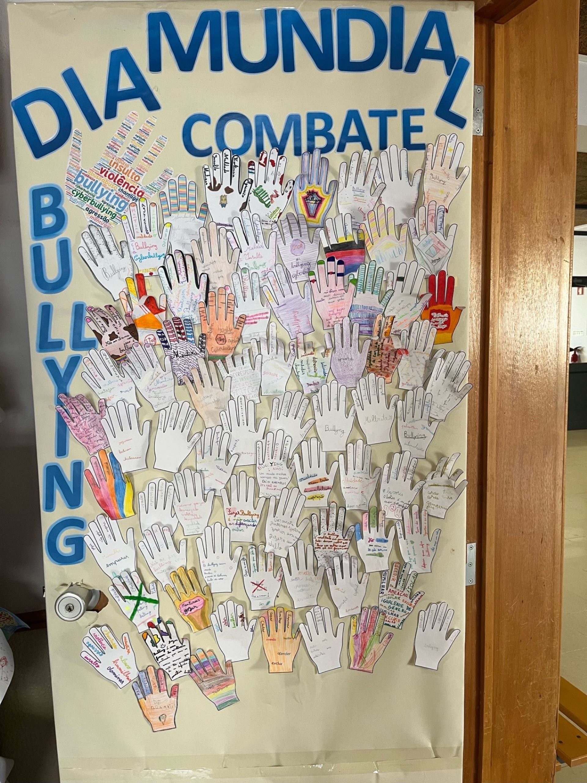 As técnicas do Serviço de Apoio ao Aluno e à Família - SAAF assinalaram o dia junto dos alunos das turmas dos 5º anos, no período de 18 a 25 de outubro, através da entrega de uma “mão” onde foram colocadas palavras referentes à problemática e foi feito um apelo aos valores de respeito, diversidade, empatia e inclusão na nossa comunidade escolar.