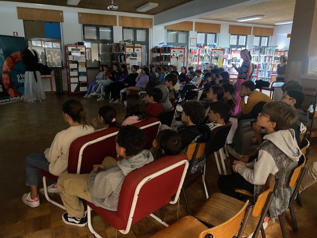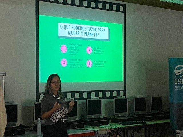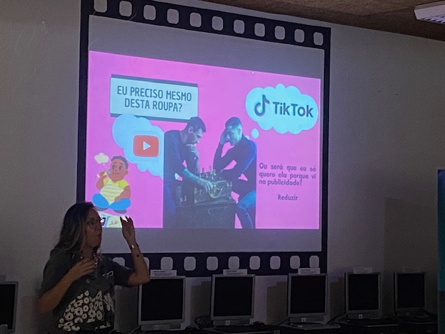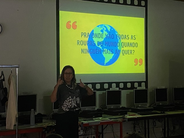 Palestras apresentadas na Biblioteca da escola pela professora Gisele Nepomuceno e com a colaboração de alunos seus, do curso de Design de Moda.