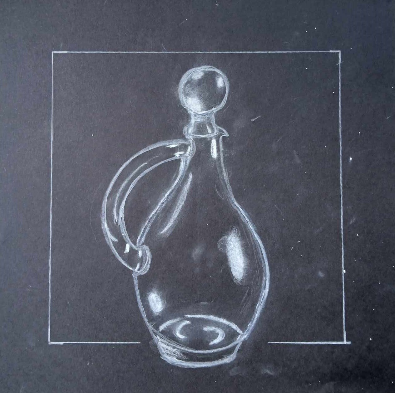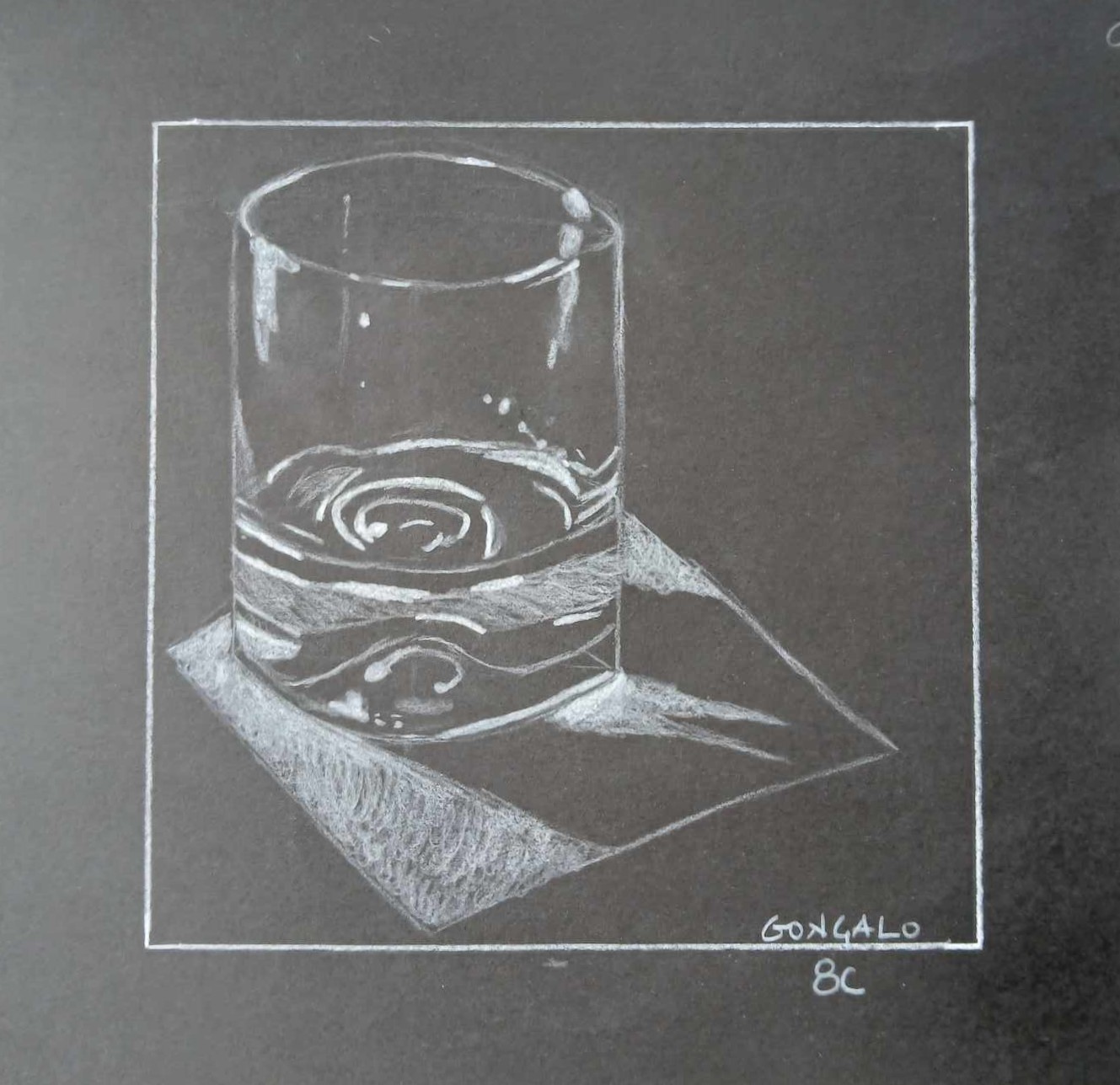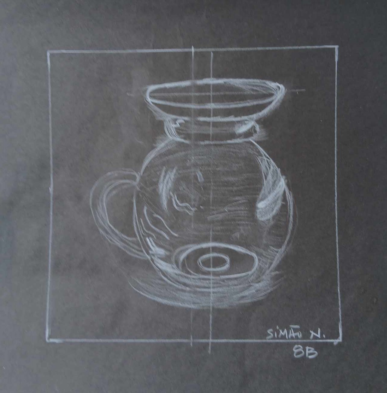 Os alunos dos 8º anos, na disciplina de Educação Visual, foram convidados a fazer Desenhos de observação / Representação de objetos de vidro sobre fundo negro.