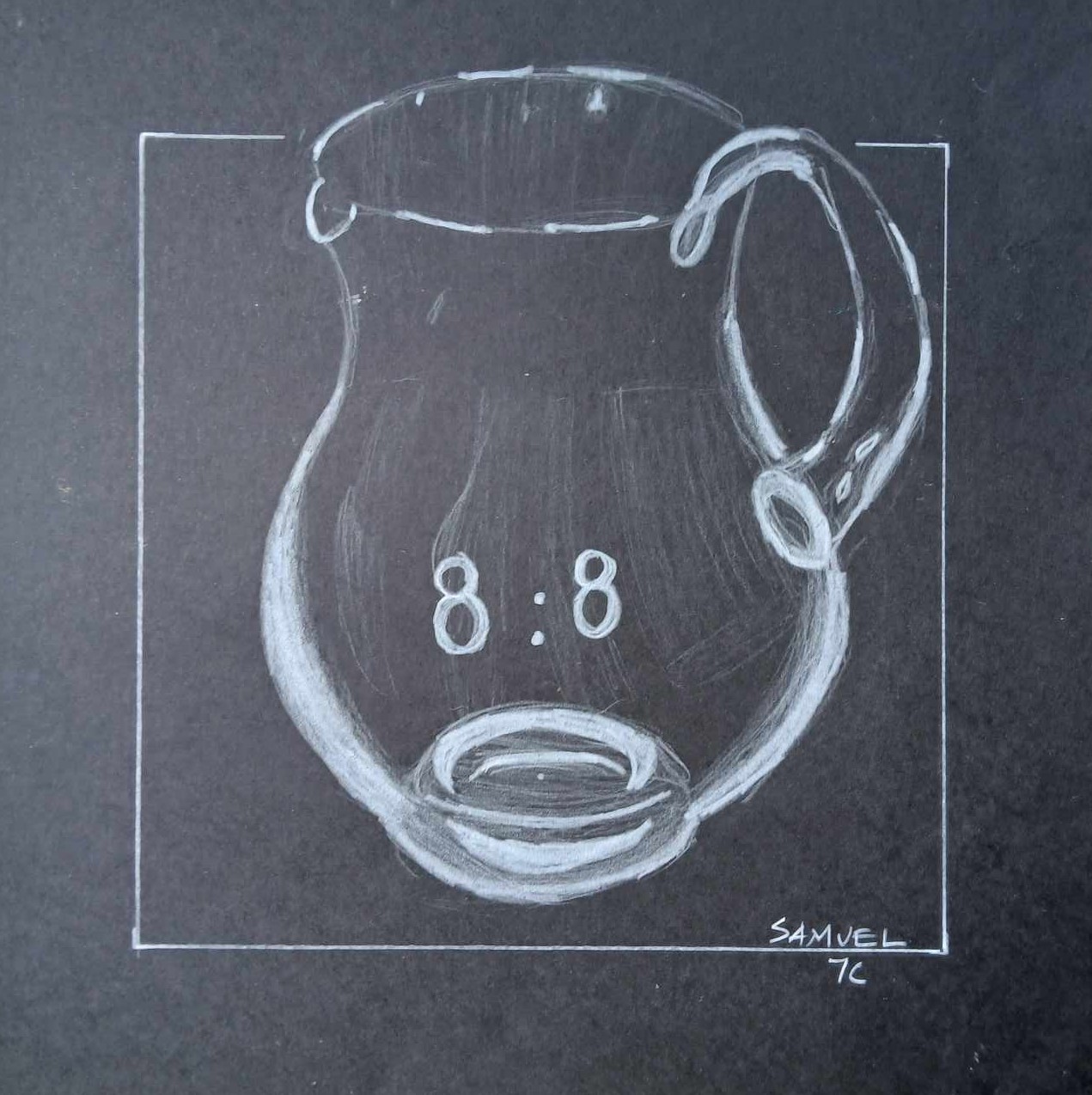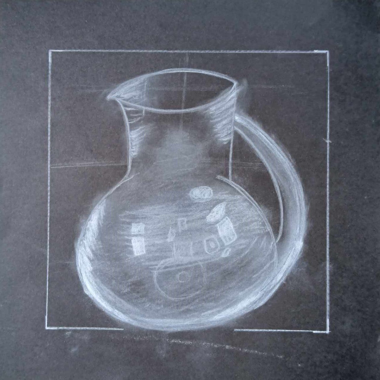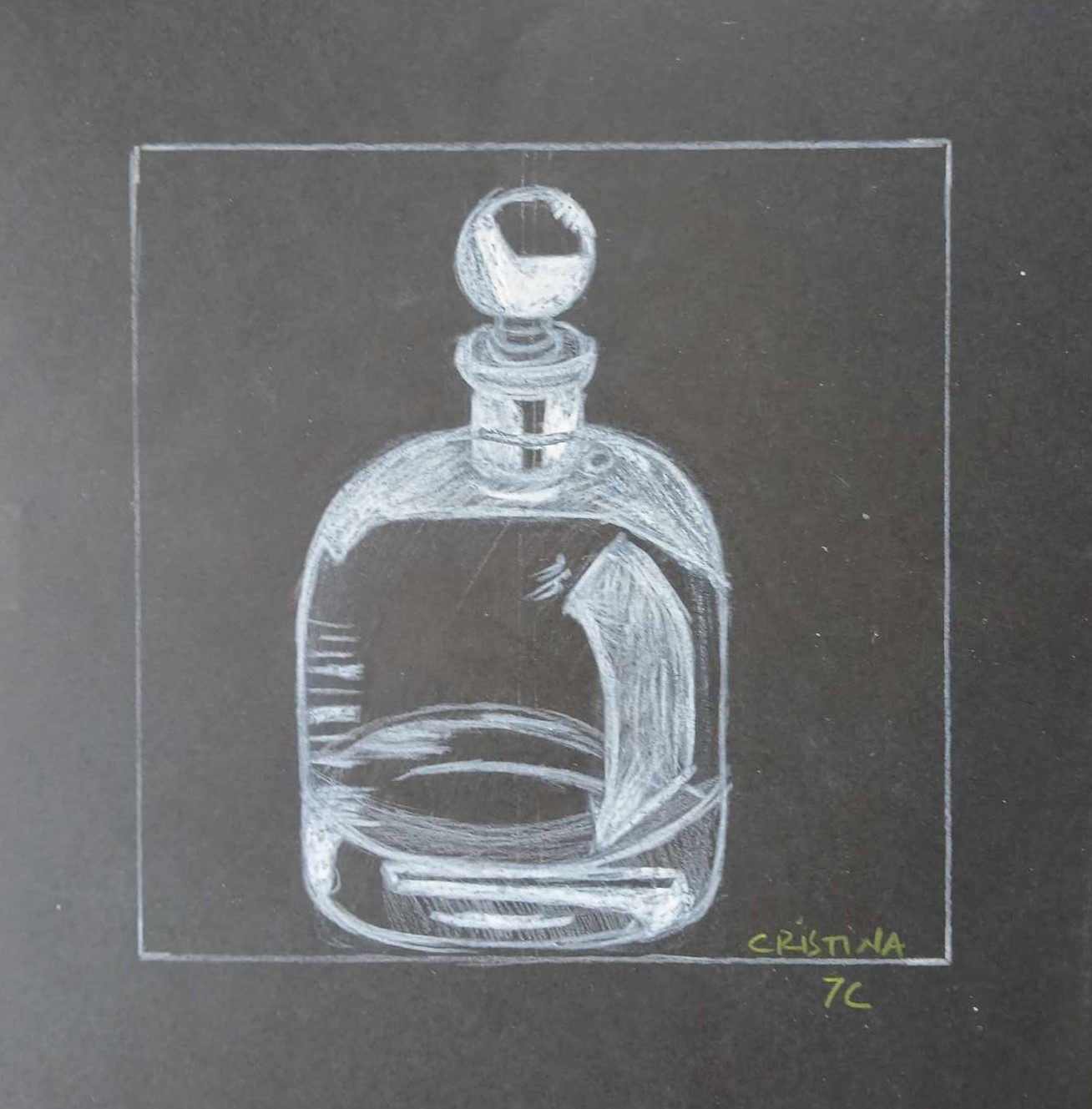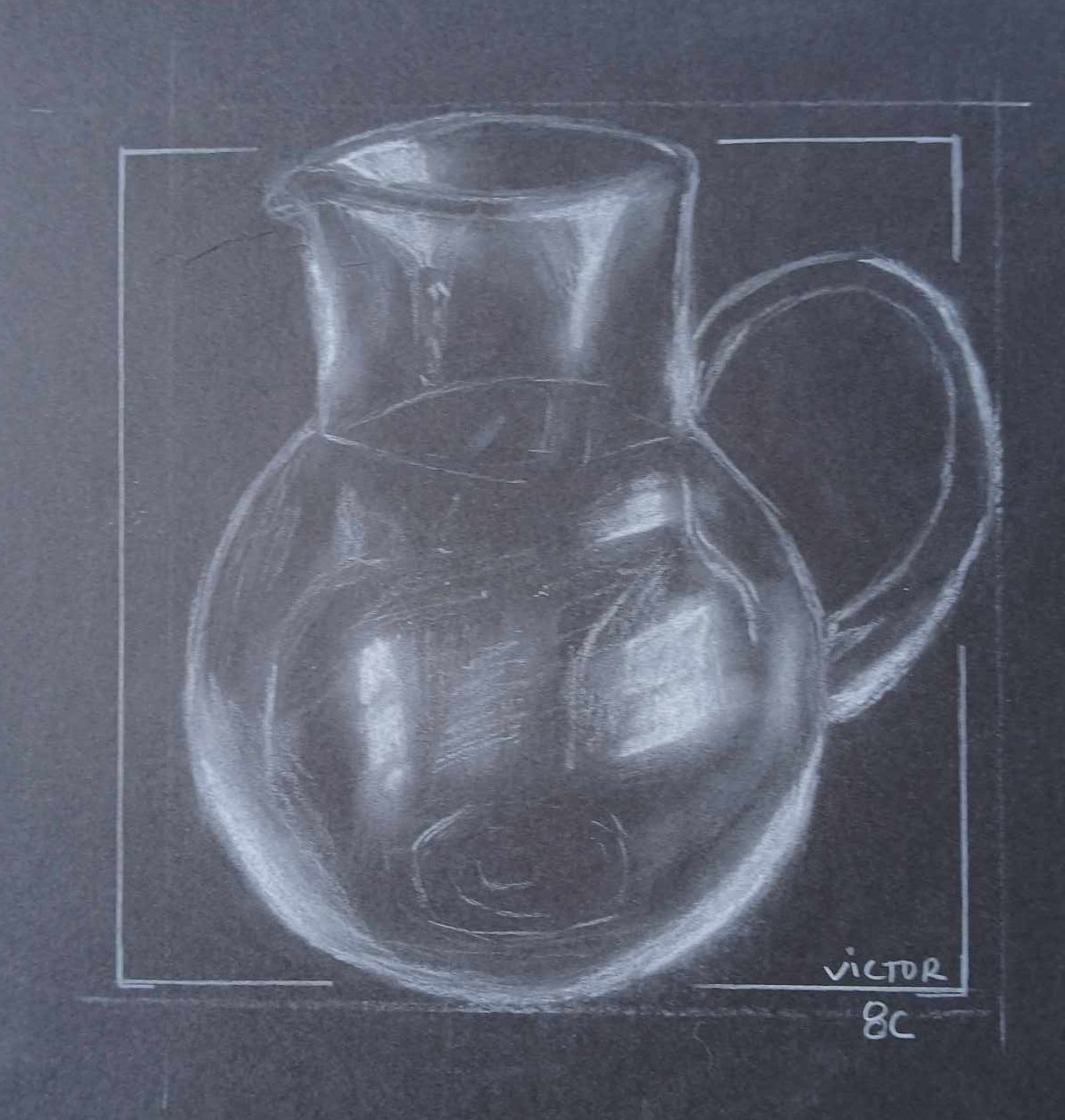 Os alunos dos 8º anos, na disciplina de Educação Visual, foram convidados a fazer Desenhos de observação / Representação de objetos de vidro sobre fundo negro.