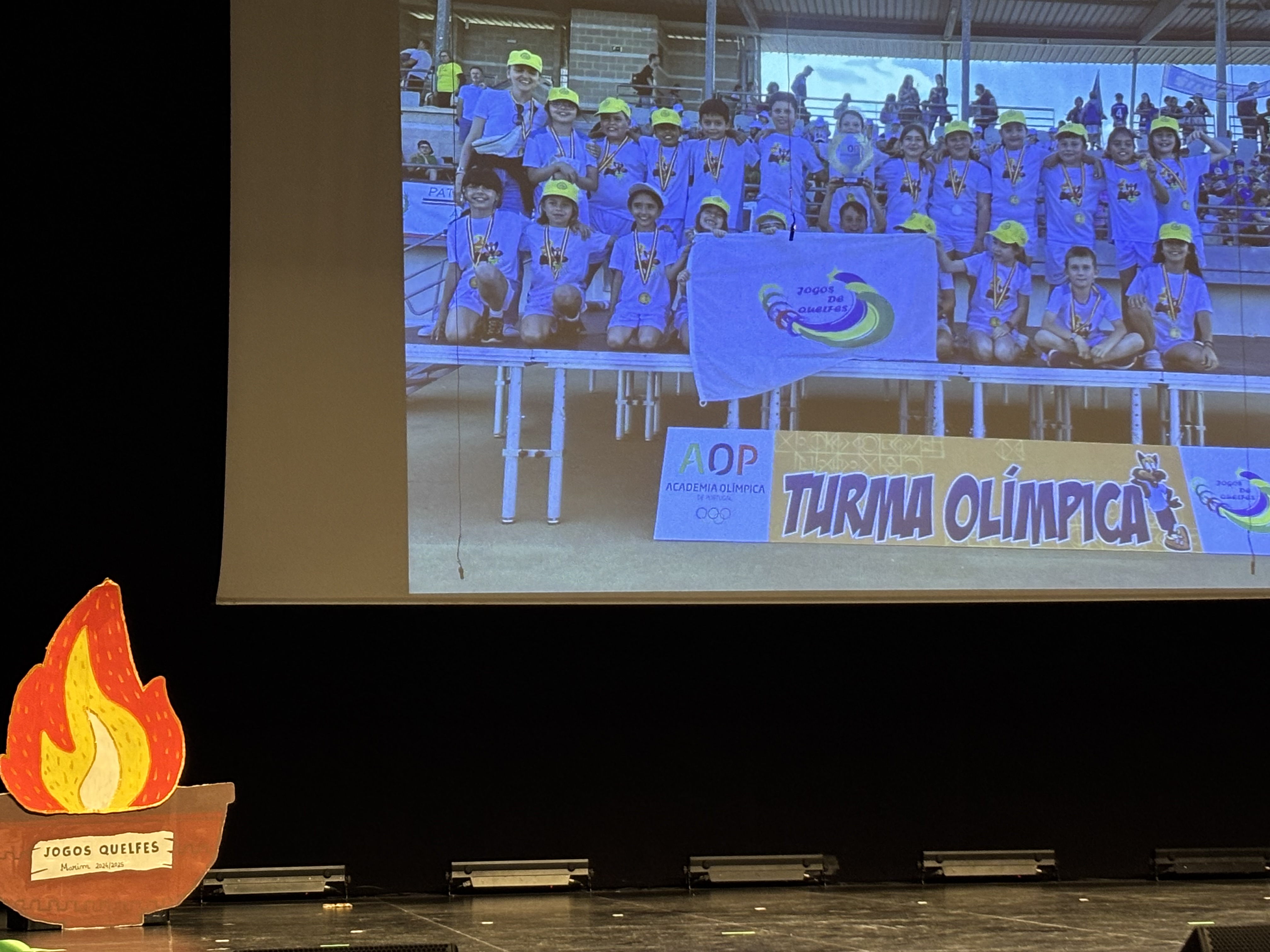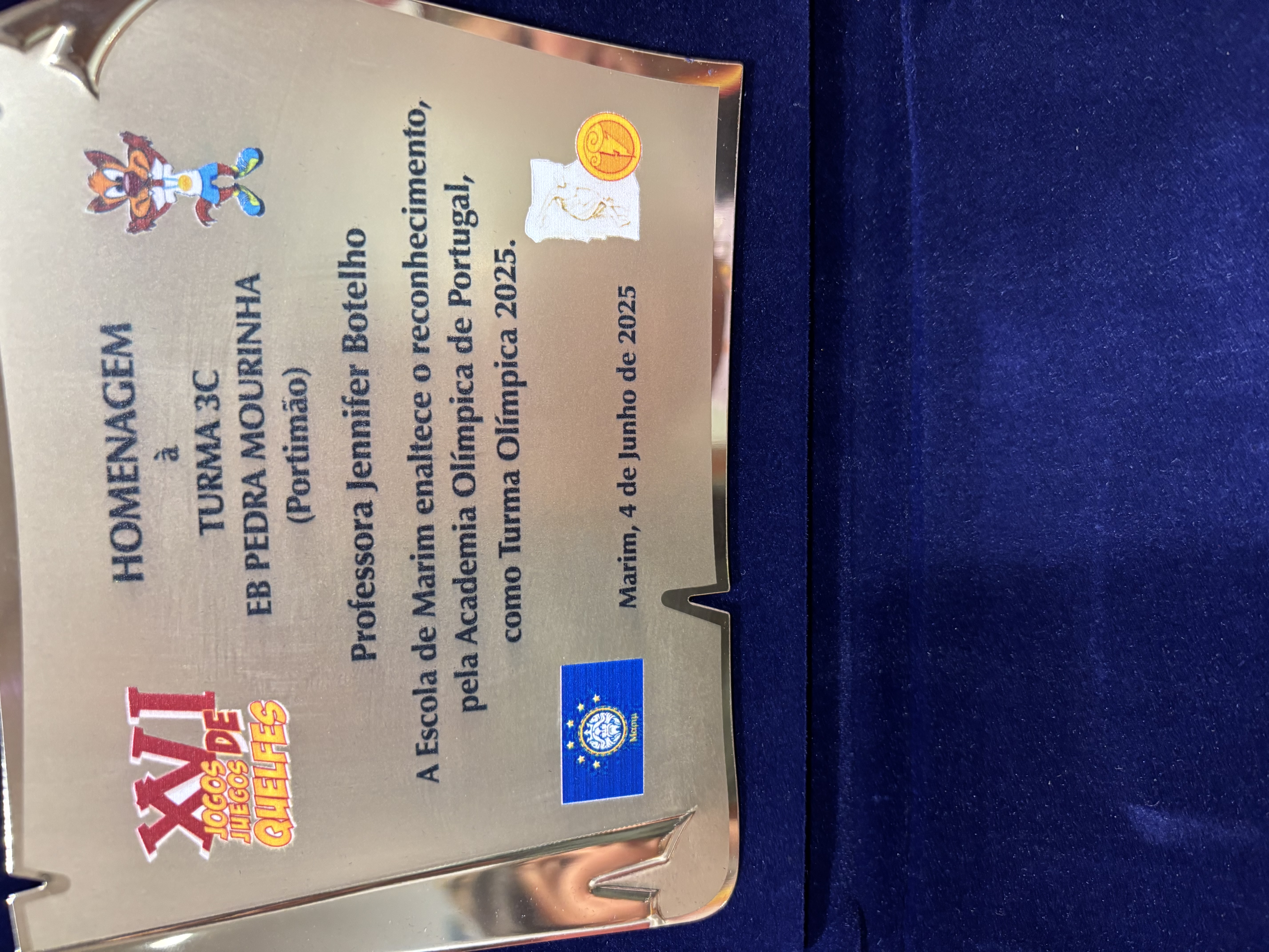 Durante esta cerimónia foram homenageados os concelhos de Ayamonte e São Brás de Alportel, enquanto anfitriões dos XVI Jogos de Quelfes, assim como a nossa turma, 3.º C da EB da Pedra Mourinha , por ter sido a mais pontuada no Desafio dos Deuses e, por isso, reconhecida como a Turma Olímpica 2025, num desafio que contou com a participação de 24 turmas.