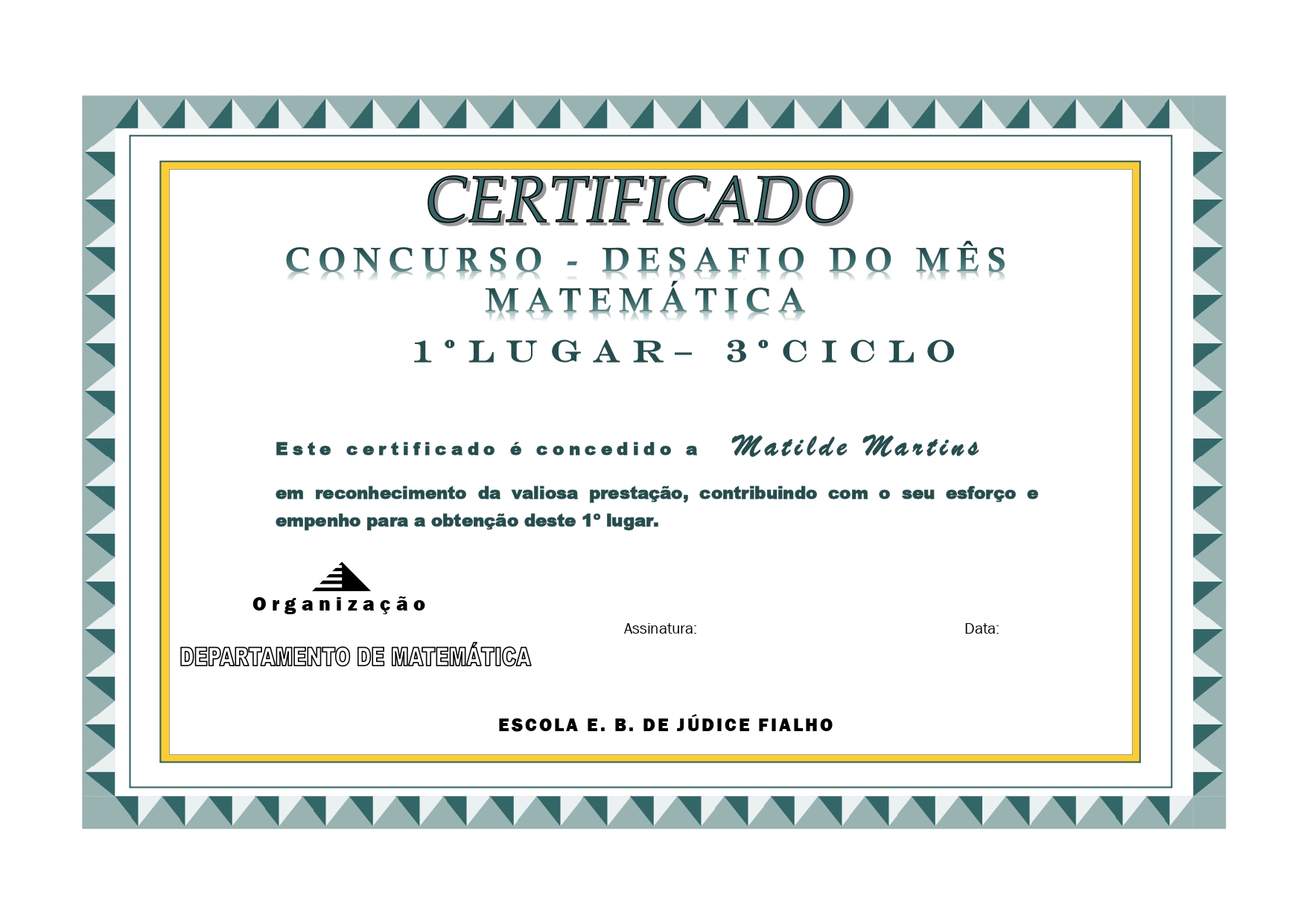 Ao longo do presente ano letivo, o Departamento de Matemática do Agrupamento dinamizou o Concurso Desafio do Mês, uma iniciativa que desafiou a criatividade e o raciocínio lógico dos nossos alunos.