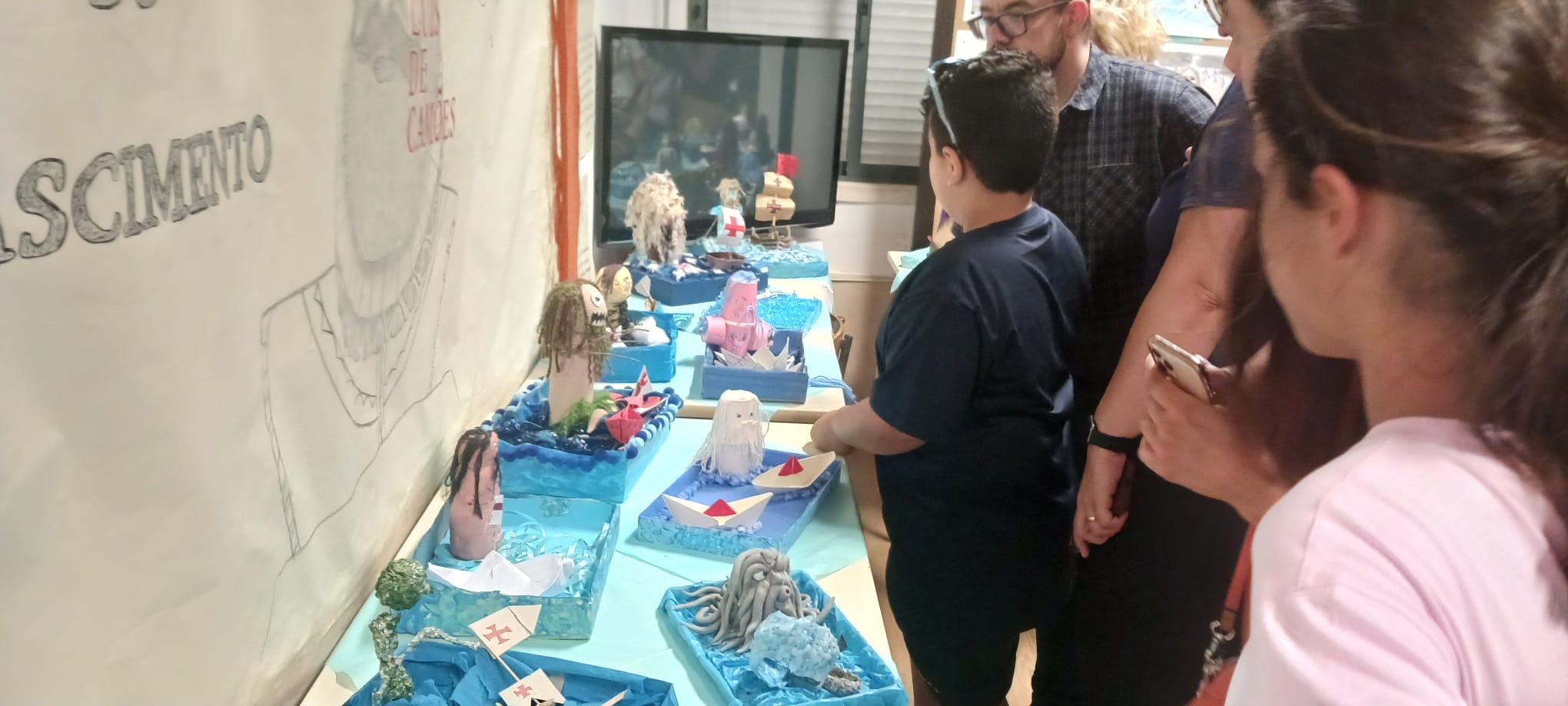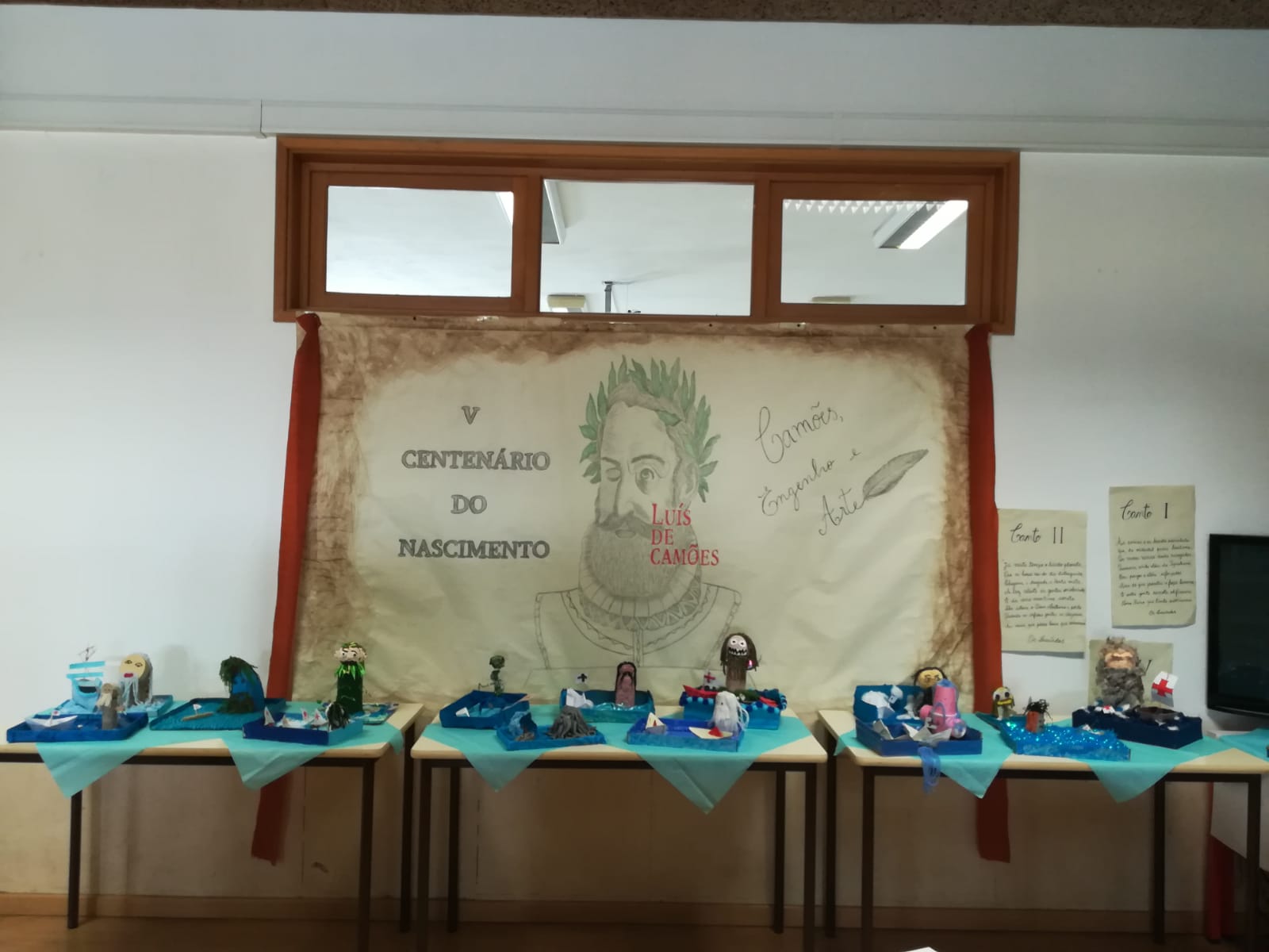 Durante o ano letivo 2024/2025 deu-se continuidade ao projeto “Dos Livros para as Expressões”, no âmbito das Comemorações do V Centenário do Nascimento de Camões. O professor bibliotecário, Vítor Ferreira, realizou sessões de leitura em todas as turmas do 5º ano, dando a conhecer as características da personagem “O Gigante Adamastor”, dos Lusíadas, de Luís de Camões e desafiou os alunos, orientados pela professora Carla Costa, nas disciplinas de Educação Visual e Educação Tecnológica, a representarem a personagem de forma artística. No final do ano letivo, os trabalhos foram expostos na Biblioteca, procedendo-se à votação no Concurso de Ilustração, e realizou-se uma sessão de apresentação de todo o trabalho, aberta também aos pais e encarregados de educação, que tiveram a oportunidade de participar na votação à distância, visitar a exposição e assistir à sessão de entrega de prémios.